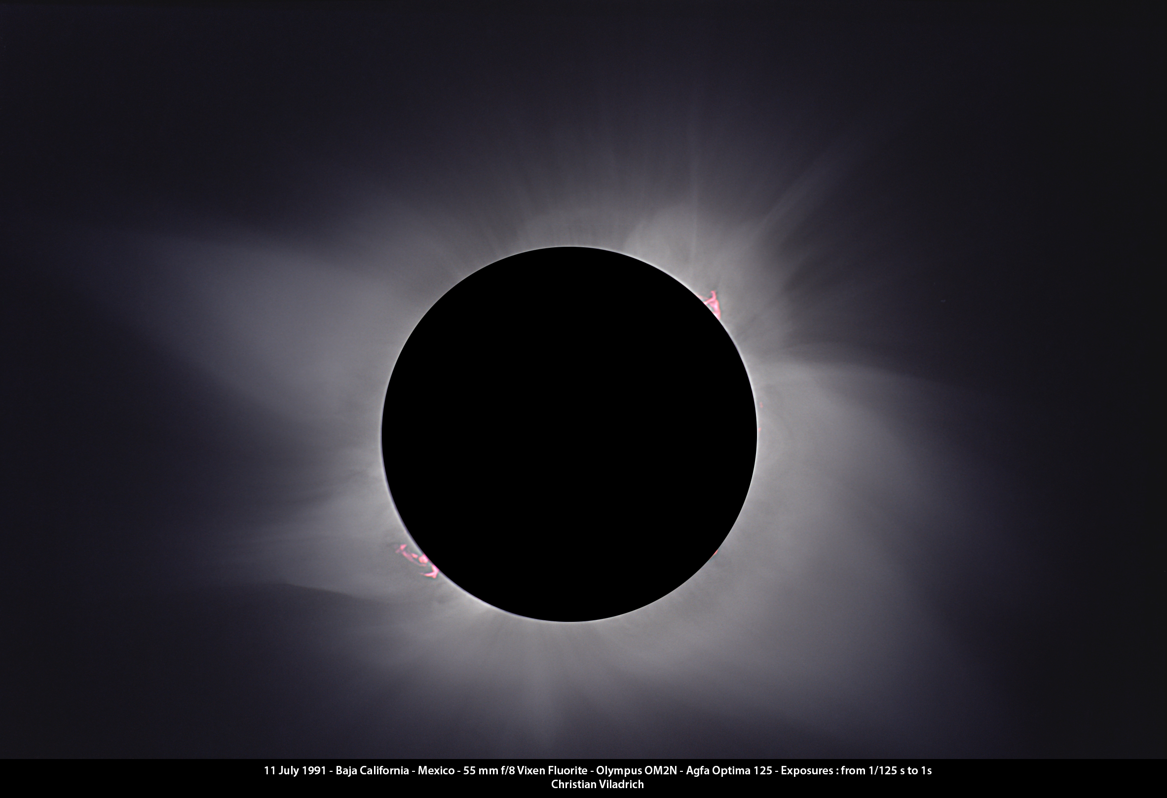 Exposure times for totality : from 1s to 1/125 s (at 1 EV interval).