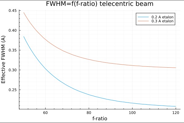 All the figures in this part are calculated by direct integration of the Lorentzian transmission of the Fabry-Perot etalon over the pupil of the telescope with a Julia program developped by the author. No approximation is made except the assumption that the etalon is assumed to be "perfect".