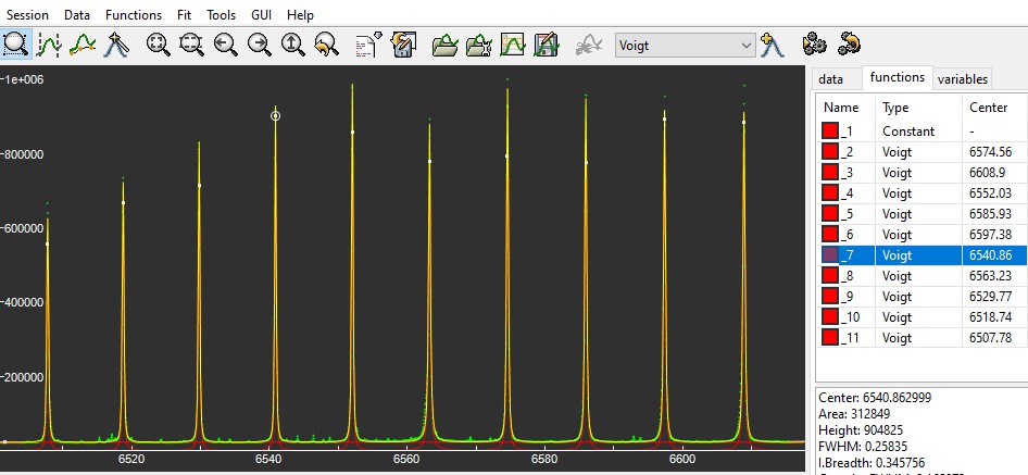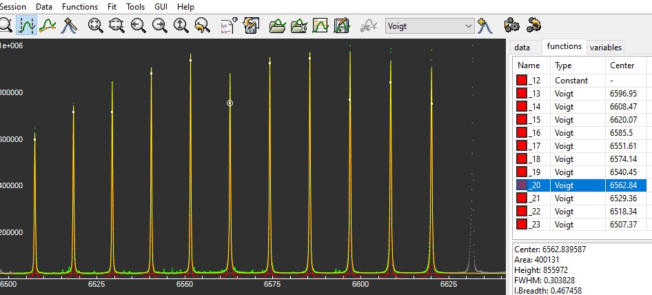 Etalon tuned on Ha: FWHM = 0.31 A Etalon not compressed: FWHM = 0.29 A. |