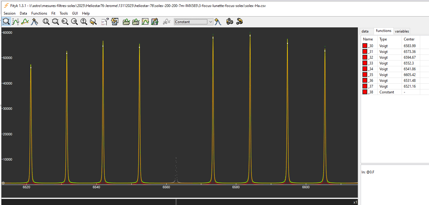 Spectro measurement in a collimated beam at the focus of the Heliostar 76, with the etalon tuned on Ha: measurement #2